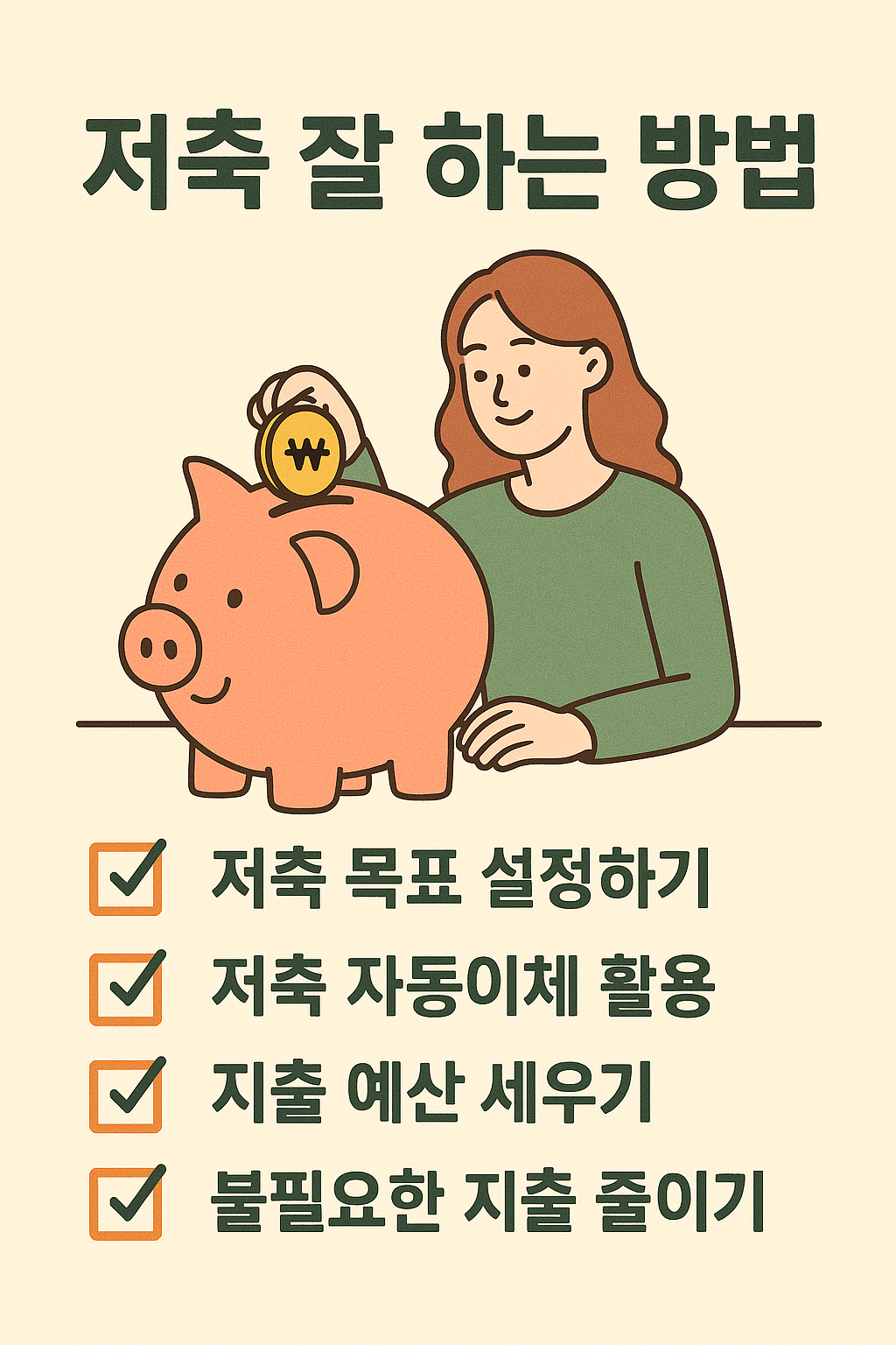 1. Introduction: 저축이 중요한 이유 저축은 단순한 돈 모으기가 아니다. 재정적 안정, 긴급 상황 대비, 미래 투자, 스트레스 관리까지 인생 전반에 영향을 주는 핵심 습관이다. 하지만 많은 사람들은 "저축하고 싶지만 안 된다"고 말한다. 👉 이유는 명확하다. 저축을 습관으로 만들지 못했기 때문이다. 💡 "돈이 없어서 못 모으는 게 아니라, 습관이 없어서 못 모으는 것이다." ✅ 저축 잘하는 실전 습관 6가지 방법 설명 🎯 저축 목표 설정하기 목적이 명확하면 돈을 쓰는 유혹을 이길 수 있다. 예: 여행, 비상금, 전세금 등 🔄 자동이체 설정하기 월급 받는 즉시 자동으로 적금 통장으로 이체되도록 설정하자. 안 보이면 안 쓴다! 🧾 지출 예산 세우기 월 고정지출과 변수지출을 미리 나누고 예산 안에서만 사용하기 📉 소비 줄이기 챌린지 무지출 데이, 현금 사용법, '하루 고민 후 구매' 습관 등 적용 🏦 통장 쪼개기 활용 생활비, 고정비, 저축, 투자 용도로 계좌를 분리하면 통제력이 생긴다 📊 저축 기록 시각화 엑셀, 가계부 앱, 다이어리로 진행 상황을 시각화하면 동기 부여에 탁월 2. Setting a Clear Savings Goal (저축 목적 구체화) 漠然한 목표는 오래가지 않는다. 예: "내년에 제주도 여행 100만 원!" → 12개월 동안 매달 8만 4천 원 저축 목표를 세우면 "이 돈은 절대 안 써!"라는 마인드가 생긴다 🎯 구체적 목표 + 기간 + 금액 = 저축 성공공식 3. Pay Yourself First (선저축, 후소비 시스템) 저축을 '남는 돈으로 하는 것'이라 생각하면 절대 성공 못 한다 월급 받자마자 자동이체 설정 소비는 저축한 이후에 설계하는 게 핵심! 📌 "미래의 나에게 먼저 월급을 지불하라." 4. Expense Planning & Budget Discipline (예산 설정과 소비통제) 소비 카테고리 분류: 식비, 교통, 취미, 커피, 쇼핑 각 항목에 한도 설정 → 사용 후 잔액 확인 '나만의 루틴'을 만들어야 습관화 가능 💡 하루 커피값 4천 원 줄이면 연 146만 원 절약 가능! ☕ 5. Tools & Apps (도구 활용으로 편하게) 도구 특징 🐷 뱅크샐러드 가계부 + 자동 분석 + 금융 추천 📱 토스 목표 설정 + 자동 저축 + 소비 알림 🧮 Excel 가계부 커스터마이징 자유, 습관화에 좋음 6. Rewards & Motivation (동기 부여 전략) 목표 달성 시 자신에게 소소한 보상 주기 SNS, 블로그에 진행 상황 인증 → 의욕 상승 함께 하는 저축 챌린지 참여도 추천 (ex. 52주 저축 챌린지) ✨ “작은 성취가 큰 성과를 만든다.” ✅ Conclusion: 저축은 기술이 아니라 태도다 📌 실천 가능한 시스템을 만들면 저축은 자연스럽게 습관이 된다 📌 목표가 있고, 자동화되고, 시각화되면 지속 가능성이 10배 이상 상승 📌 "돈을 모은다"는 건 곧 내 삶을 설계한다는 것이다 👉 오늘부터 내 재정습관을 다시 설계해보자. 한 달 후의 내가, 오늘의 나에게 고마워할 수 있도록. 💸📊💪